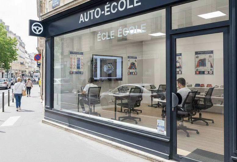 - Les locaux : La règle des 25 m² minimum (accueil + salle de cours). Le local doit être destiné exclusivement à l’exercice d’activités en lien avec l’éducation à la conduite et la sécurité routière et doit disposer d’une entrée indépendante de toute autre activité. Il comprend au minimum une salle affectée à l’accueil du public et une autre à l’enseignement.
