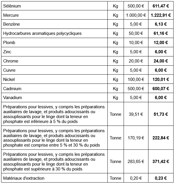 - Tarifs de la composante déchets de la TGAP appliqués