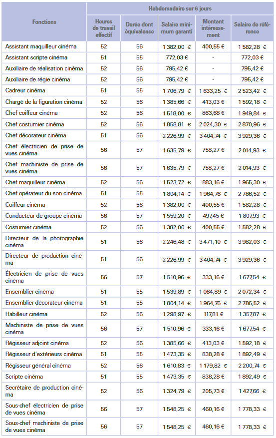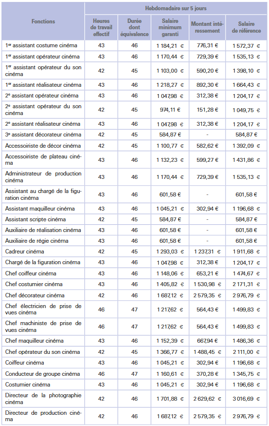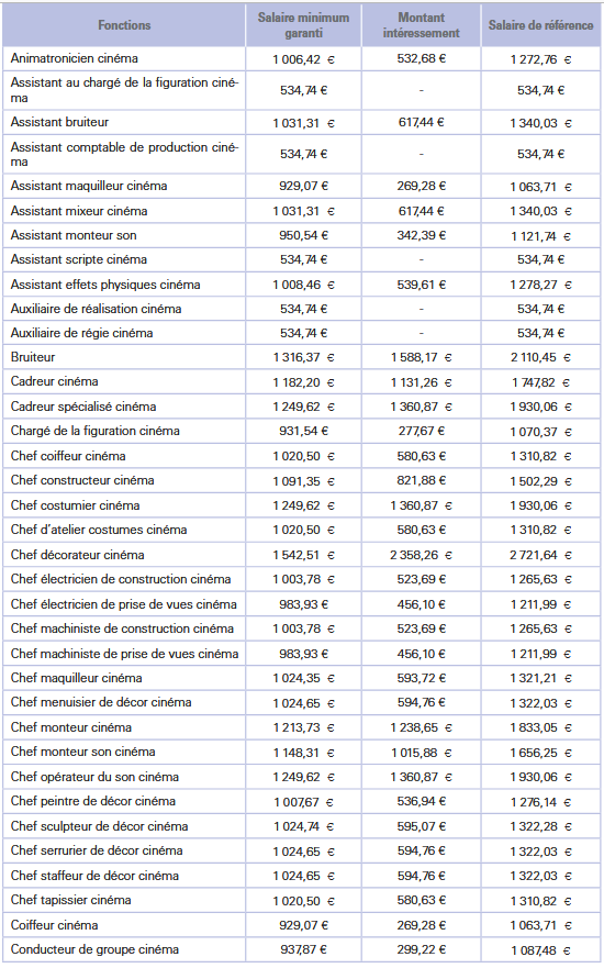 Salaire minimum garanti des réalisateurs cinéma